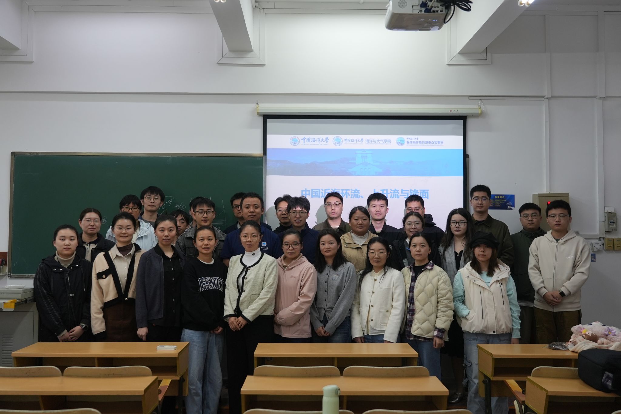 授课现场,气氛热烈,吸引了众多海洋科学专业的本科生及海洋科学学院的老师们参与聆听学习。林霄沛教授以“中国近海上升流与海洋锋现象”为切入点,采用从“现象认知”到“原理机制”的递进式讲授方法。他结合卫星遥感影像与海上观测数据,直观呈现了我国近海上升流的分布特征及海洋锋的形态差异等核心现象,帮助学生对这些“看不见摸不着”的海洋环流现象建立起具象认知。本次授课不仅有助于学生构建系统的近海区域海洋学知识体系,也进一步激发了大家对海洋科学研究的兴趣,获得了广泛好评。