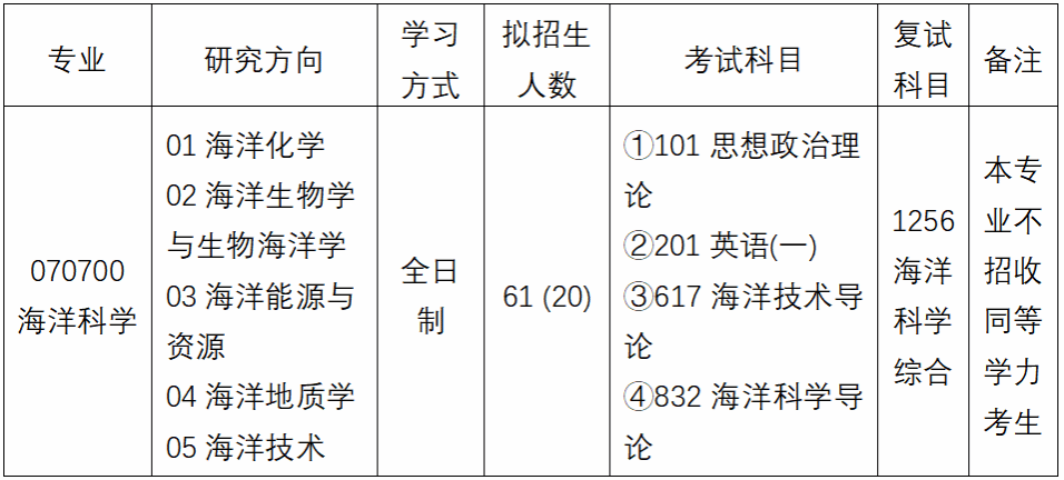 本科毕业专业为海洋、化学、材料、环境、生物、生态等相关学科专业的考生均可报考。热忱欢迎有志于海洋事业的学子加入我们,共同探索蔚蓝海洋奥秘,服务国家南海战略和海南自由贸易港建设!