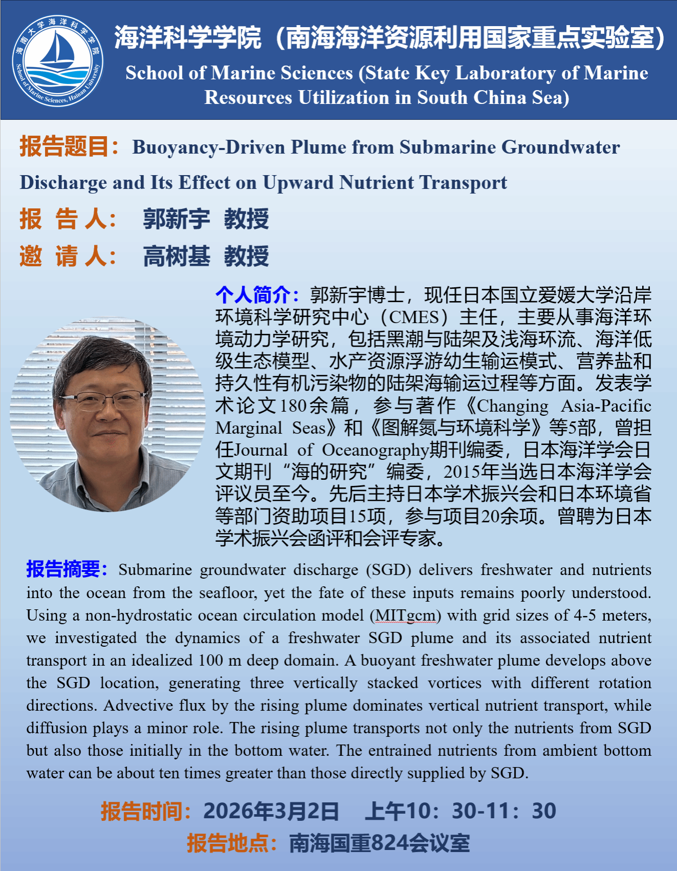 郭新宇——Buoyancy-Driven Plume from Submarine Groundwater Discharge and Its Effect on Upward Nutrient Transport