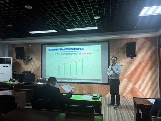袁益辉副院长从申报数、立项数、资助率、全校排名、学科代码等多方面分析学院2025年基金申报情况,指出了学院存在的薄弱环节,并明确了2026年度的改进方向。他指出,基金申报是牵动学院科研发展全局的重要工作,全院教师要尽早谋划、认真准备、反复打磨、全力以赴!