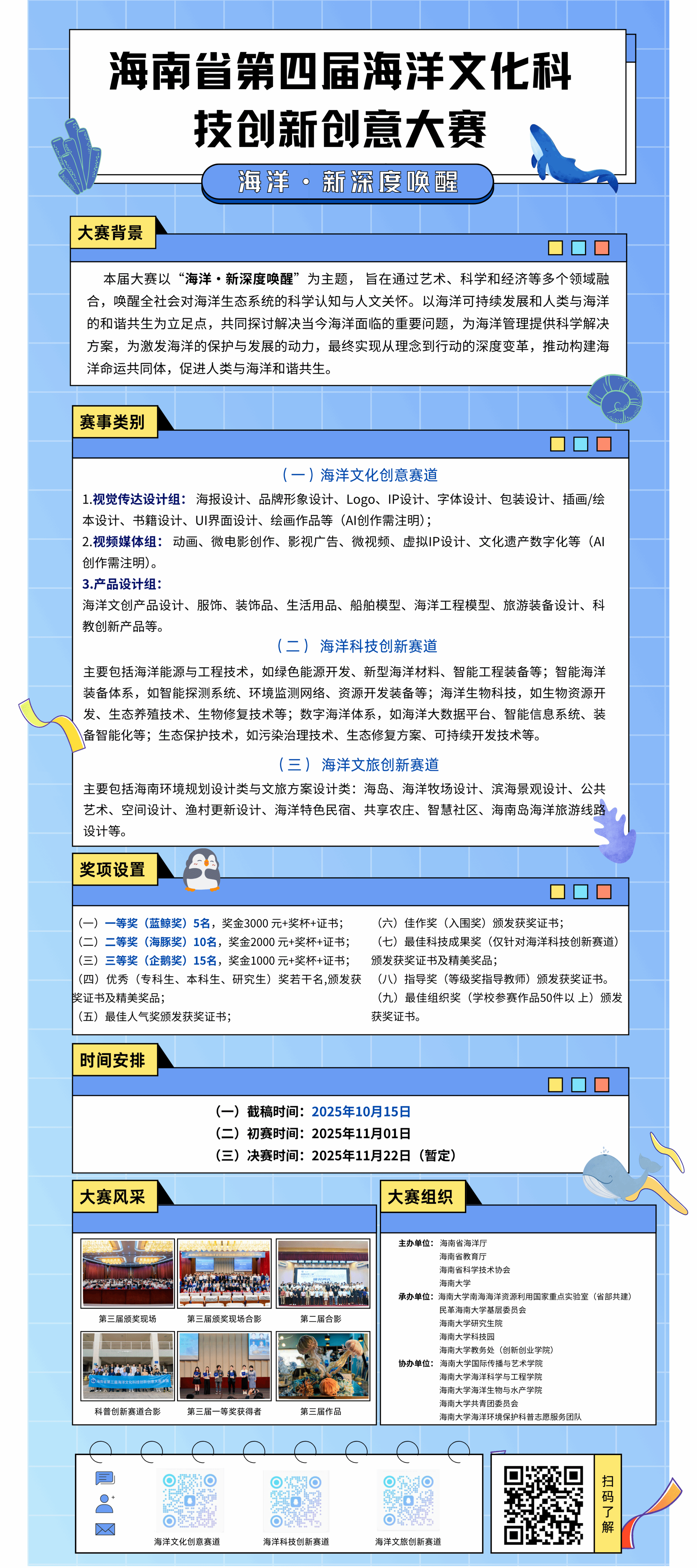 海南省第四届海洋文化科技 创新创意大赛作品征集海报